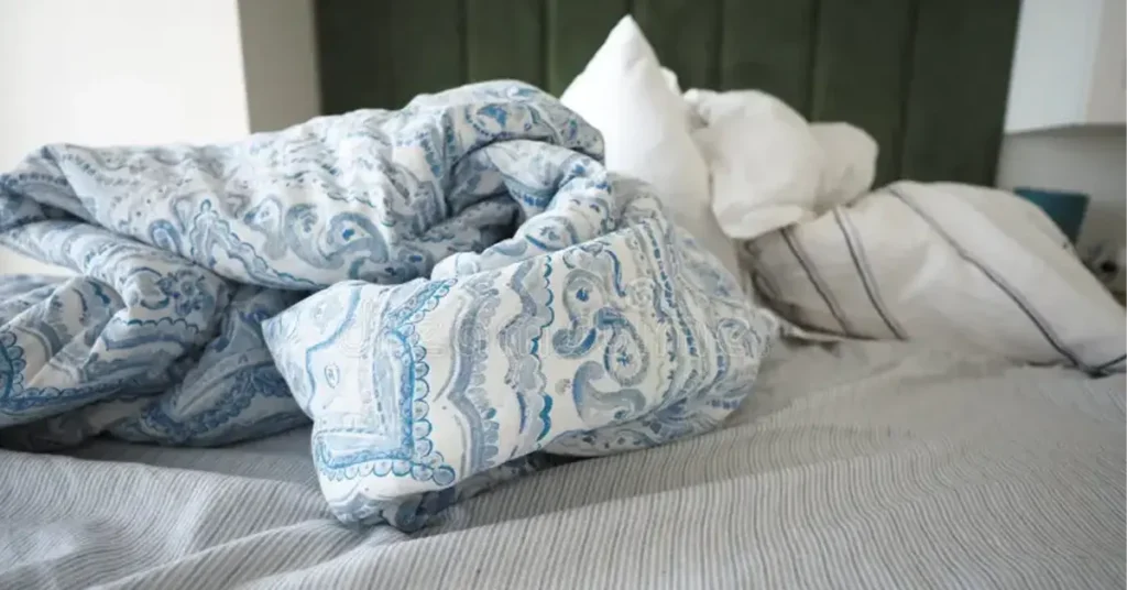 Cobrir a cama assim que acorda pode abafar a umidade acumulada durante a noite. Espere ao menos 20 minutos antes de colocar a colcha ou edredom, permitindo que o colchão “respire”.